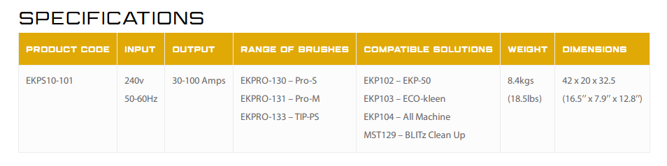 Adjustable amperage output control ranging from 30-100amps of available cleaning power